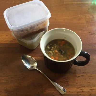 Cook up a pot of your favourite soup, casseroles & curries, and store in indivudual serving containers in the freezer, in the morning just drop it into a